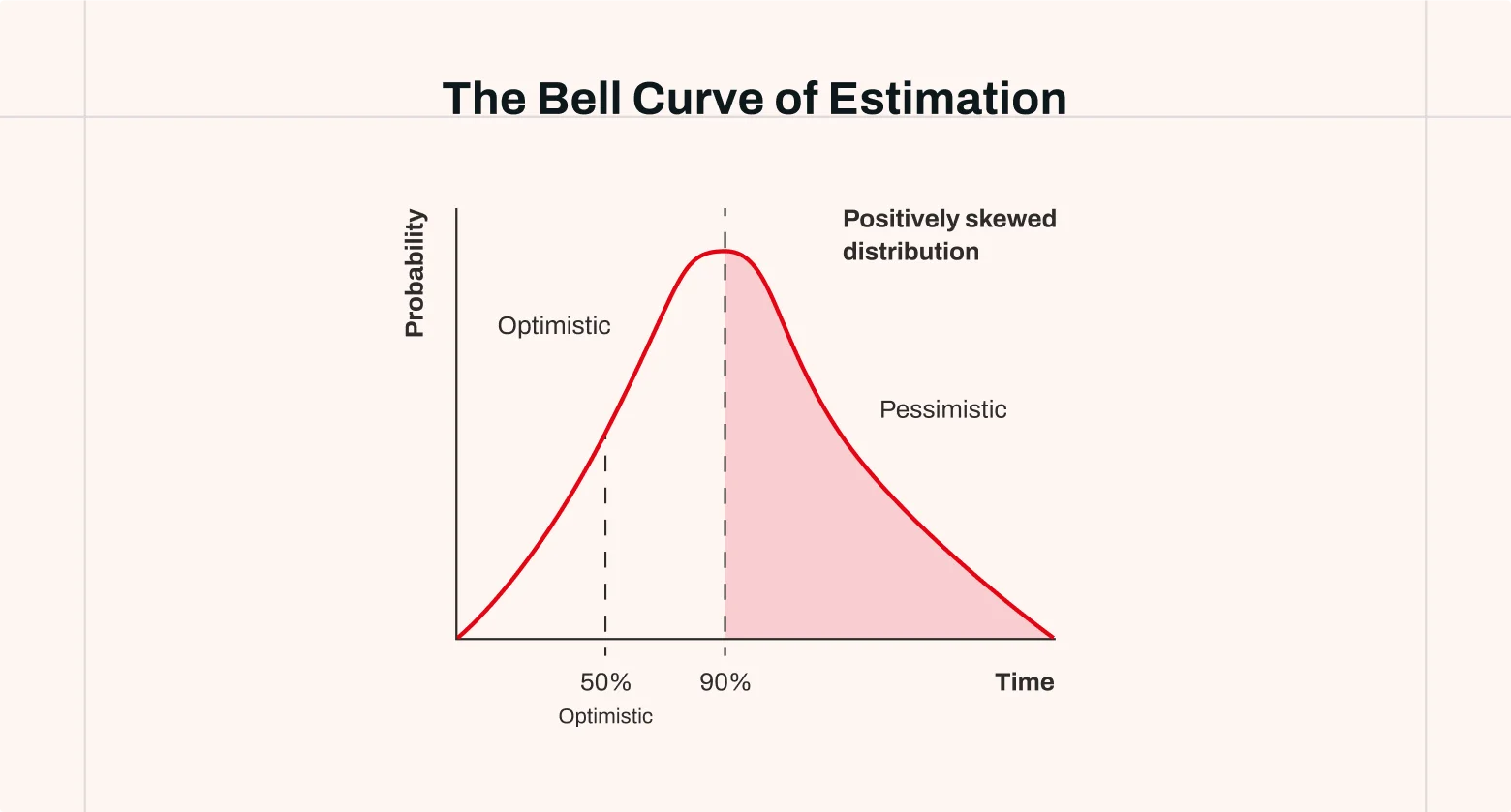 If the cone shows accuracy over time, the bell curve shows how outcomes are distributed for a single estimate. From a probability view, an estimate is not a fixed number; it’s a distribution.